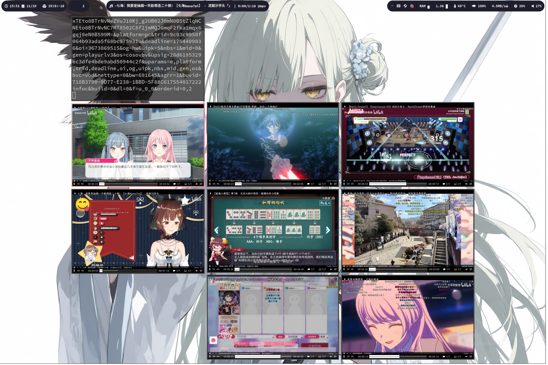 - 播放器:推荐用 revda 的 dmlive,直接用 mpv 的 yt-dlp 也可以,后者看不到弹幕。