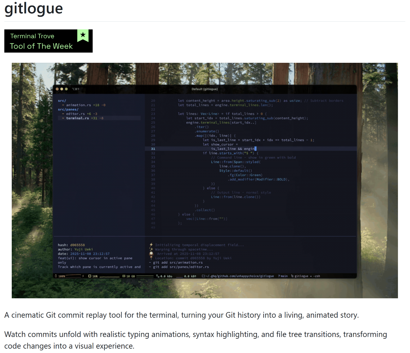 About/ Blog/ 安利一些非常酷的小工具/ 安利一些非常酷的小工具 2025-12-04· loading · loading · Like · IT IT Linux Table of Contents gitlogue Table of Contents gitlogue gitlogue #