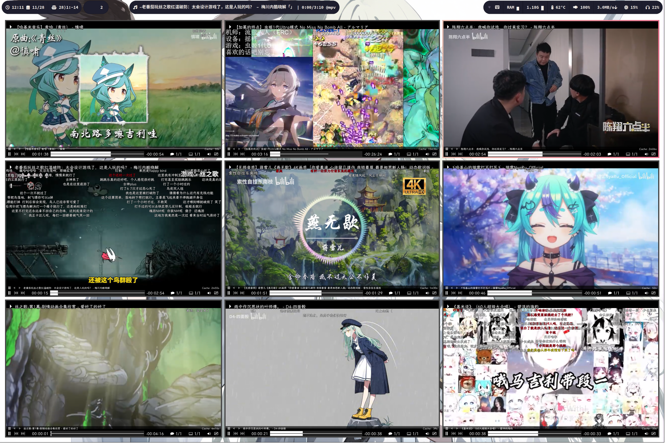 现在的配置情况下终于可以流畅的同时看9个视频了(下次有时间讲一下怎么用